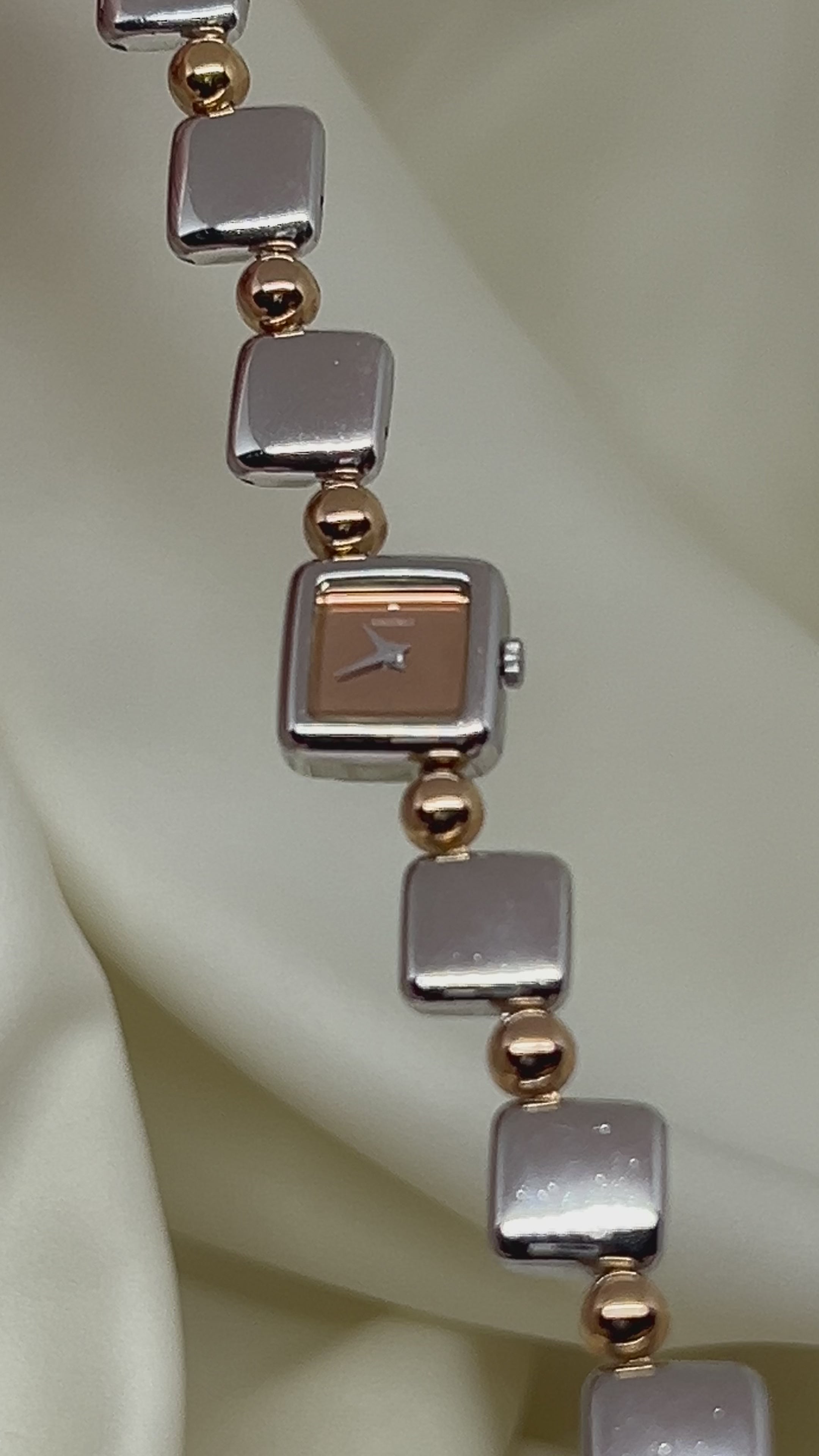 Vintage Ladies Square Rose Gold Dial Bracelet Watch